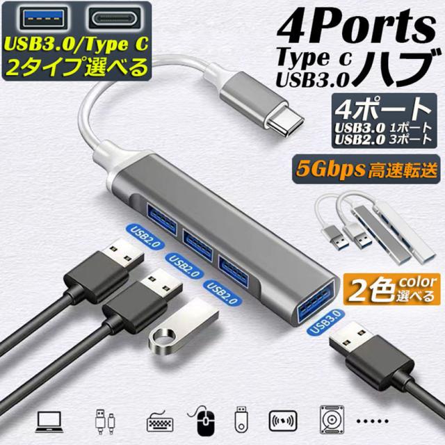 USBハブ type-c USB3.0 2端子 選べる 4ポート 超薄型 USB3.0 バスパワー ps4 USB ハブ ウルトラスリム 軽量 コンパクト USB Hub USB C Type cハブ Windows Macなど対応 USB拡張 リモード