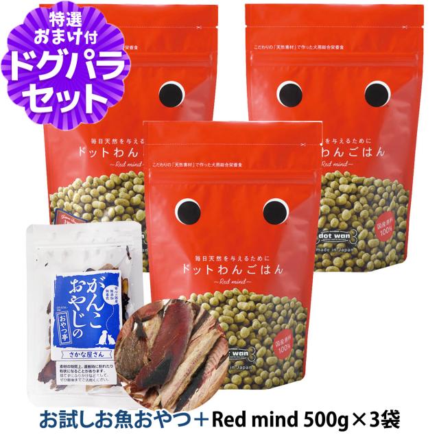 【沖縄以外送料無料】ドットわん ドッグフード Red mind 500g×3袋+お試し国産お魚厚削り 15g 【通常2-5ヶ月の賞味期限で出荷】