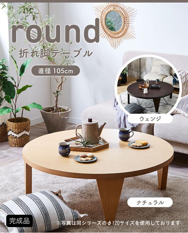 【完成品】折れ脚 センターテーブル 105-R 2色対応 幅105cm ローテーブル リビングテーブル 丸 円 折りたたみ 折り畳み 座卓 ちゃぶ台 折れ脚テーブル 円卓 木製 突板 机 一人暮らし おしゃれ シンプル