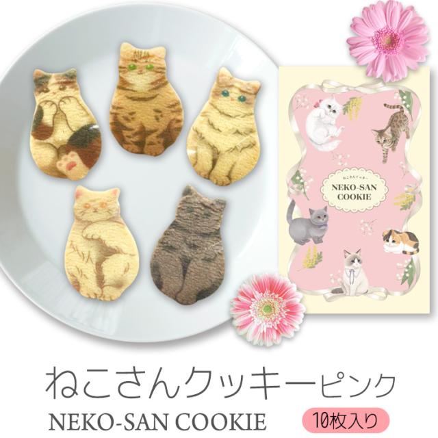 猫 お菓子 ねこさんクッキー ( 10枚入 ) ピンク 猫 ねこ ネコ Cat キャット 三毛猫 ハチワレ 茶縞 黒縞 クロネコ かわいい クッキー
