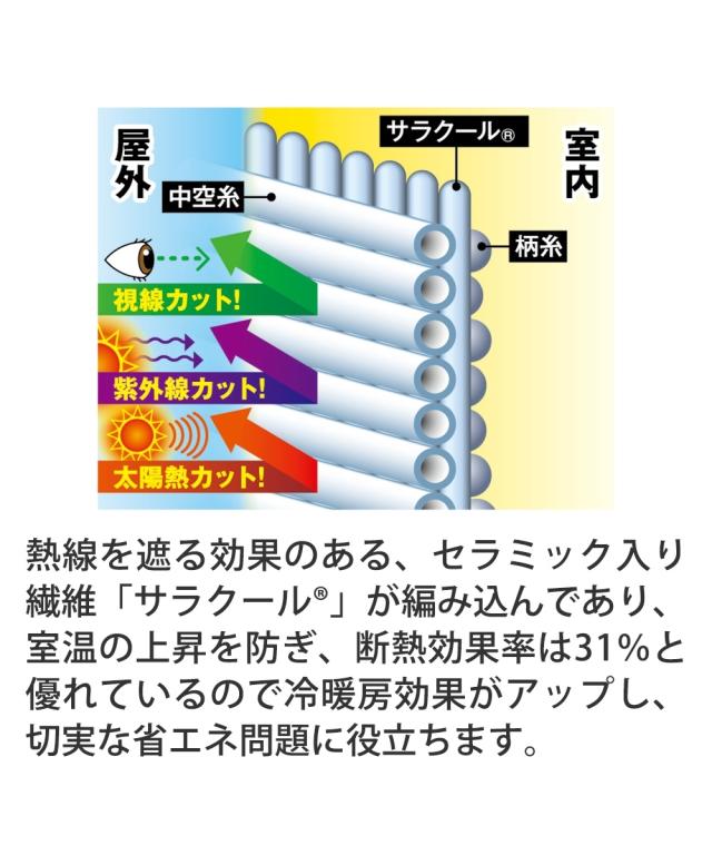 機能繊維が熱をカット!目隠し効果もバツグン 昼も夜も目隠し効果遮像でお部屋の中が見えにくくなります。 夏は涼しい断熱性で紫外線もカット。