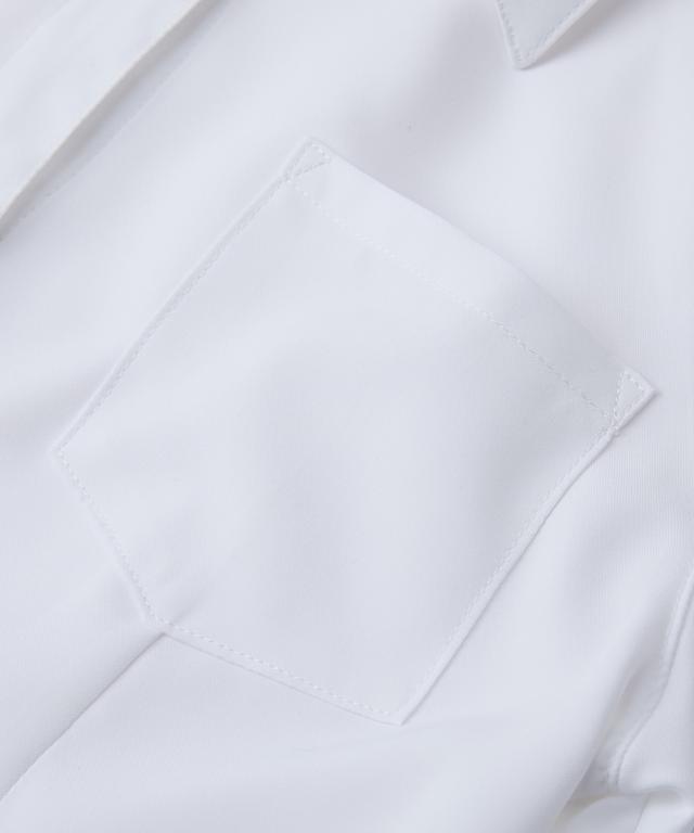 品質:[本体]ポリエステル100%(織物 アサコ平織)[リボン]ポリエステル65%・レーヨン35% 前ボタン開き 柄の出方が多少異なる場合があります。 透け感:ややあり ※色によって透け感が異なる場合があります。ベージュ系インナーの着用をおすすめします。 伸縮性:なし 生地の厚み:やや薄い 光沢感:ややあり ポケット:あり(胸1) シルエット:普通 原産国:中国製 備考:単位:cm ※サイズの誤差は多少発生します。ご了承ください。