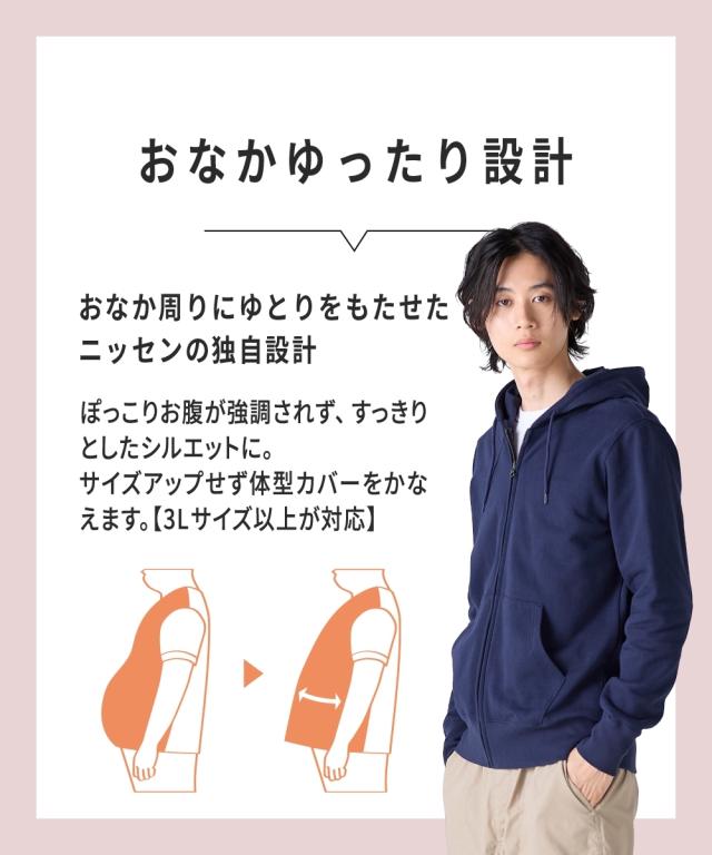 パーカー メンズ 綿100% 裏毛フルジップ 3L以上お腹ゆったり 3L〜10L ニッセン nissen