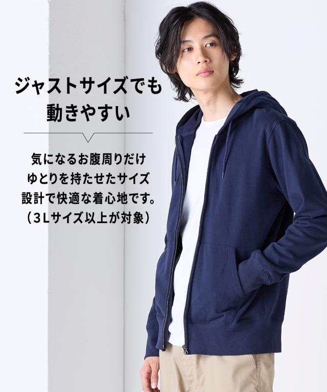 綿100%スウェットジップパーカー【3L以上お腹ゆったり】