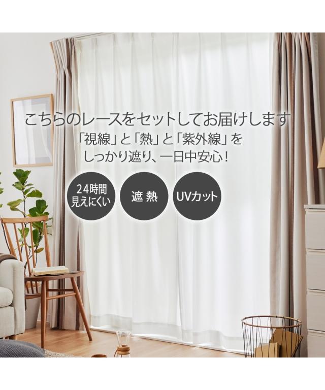●セット内容:幅100・150cm=カーテン2枚・レースカーテン2枚の計4枚セット、幅200cm=カーテン1枚・レースカーテン1枚の計2枚セット <カーテン>●品質:ポリエステル100%(裏面=アクリル樹脂コーティング) ●遮光率=1級遮光(99.99%) <レースカーテン>●品質:ポリエステル100% ●紫外線カット率=84% ●カーテンと共生地のタッセル付 ●アジャスターフック付 ※幅100cm以外の商品は継ぎ目が入ります。 ※レースカーテンの長さはご注文サイズより2cm短く仕上げております。