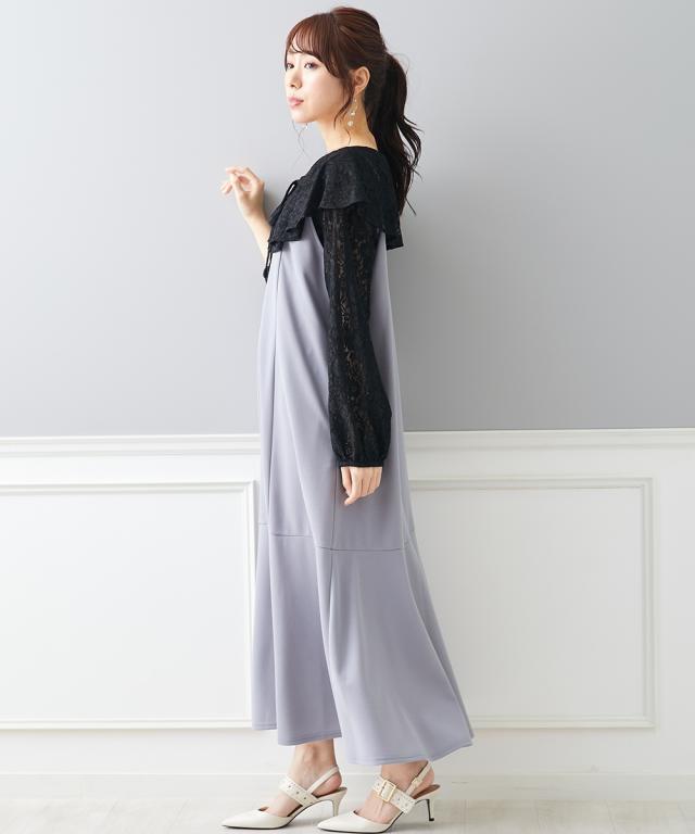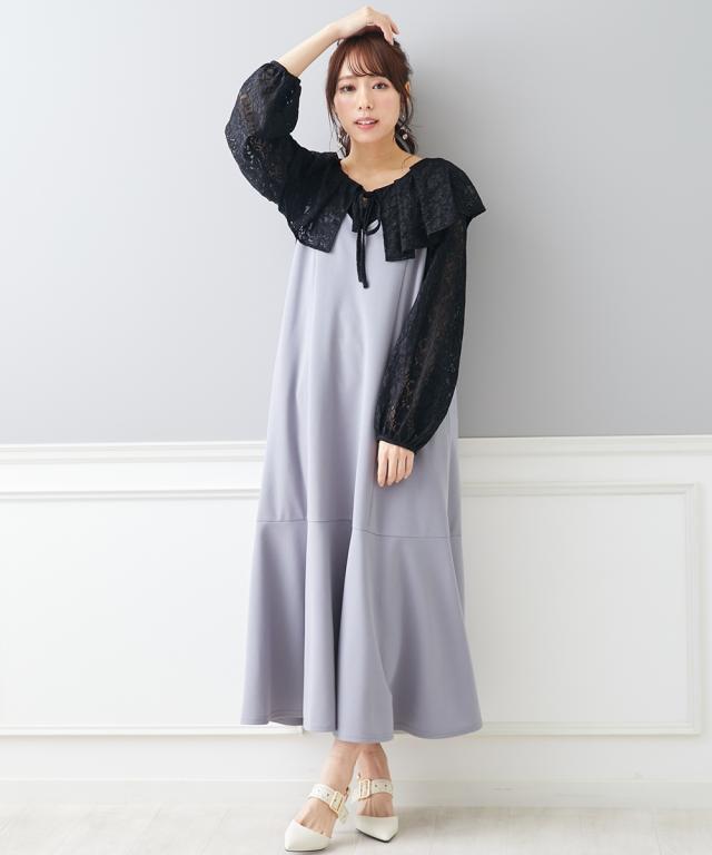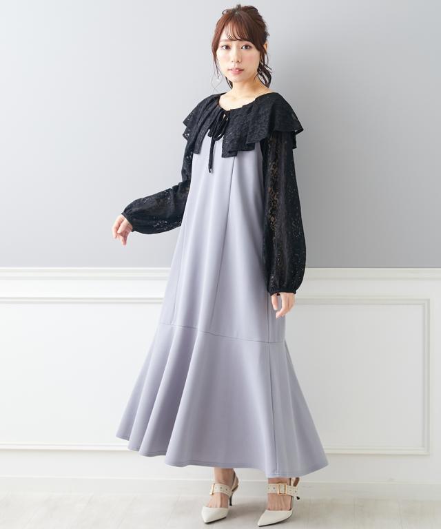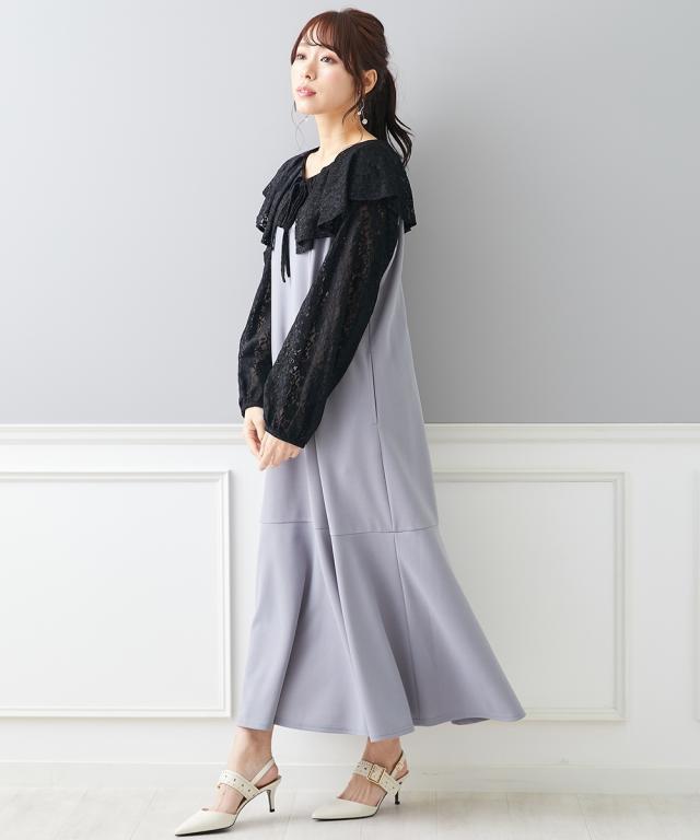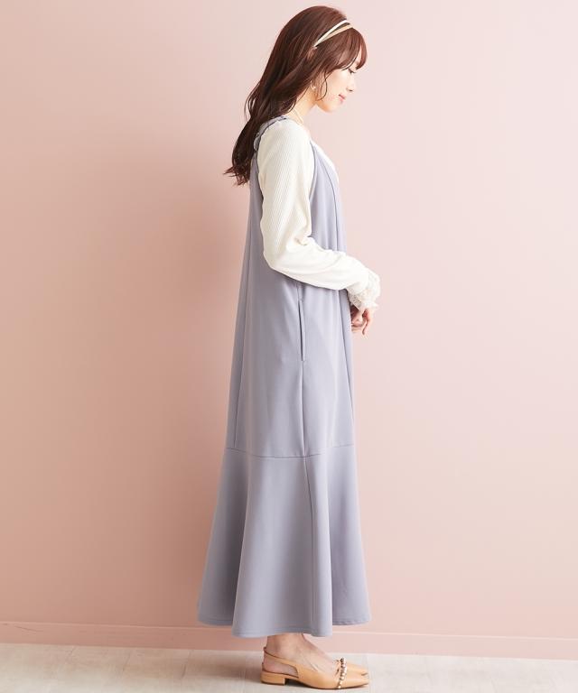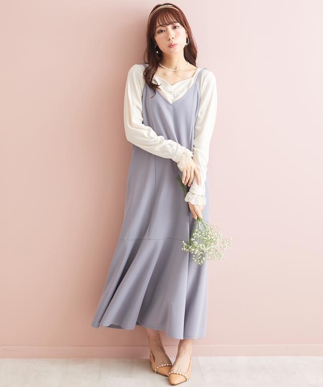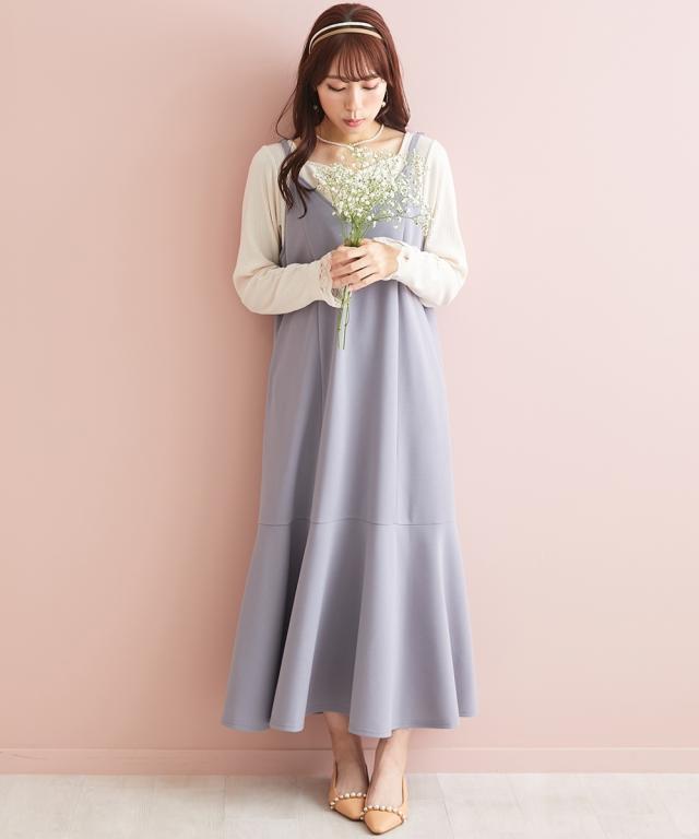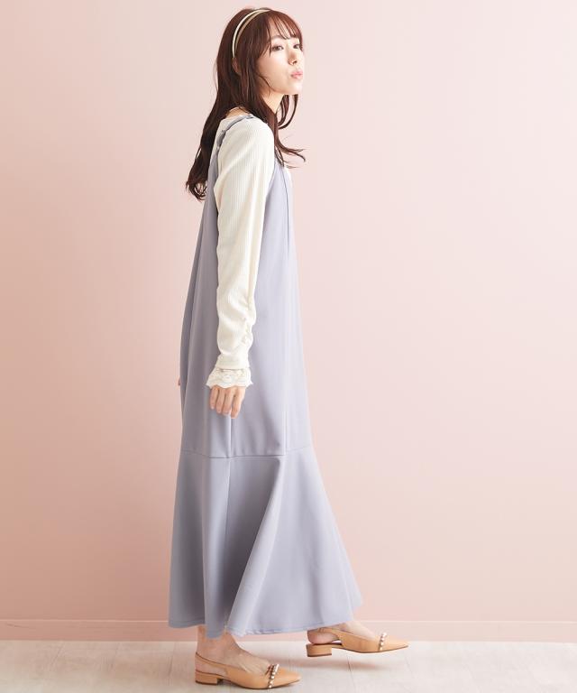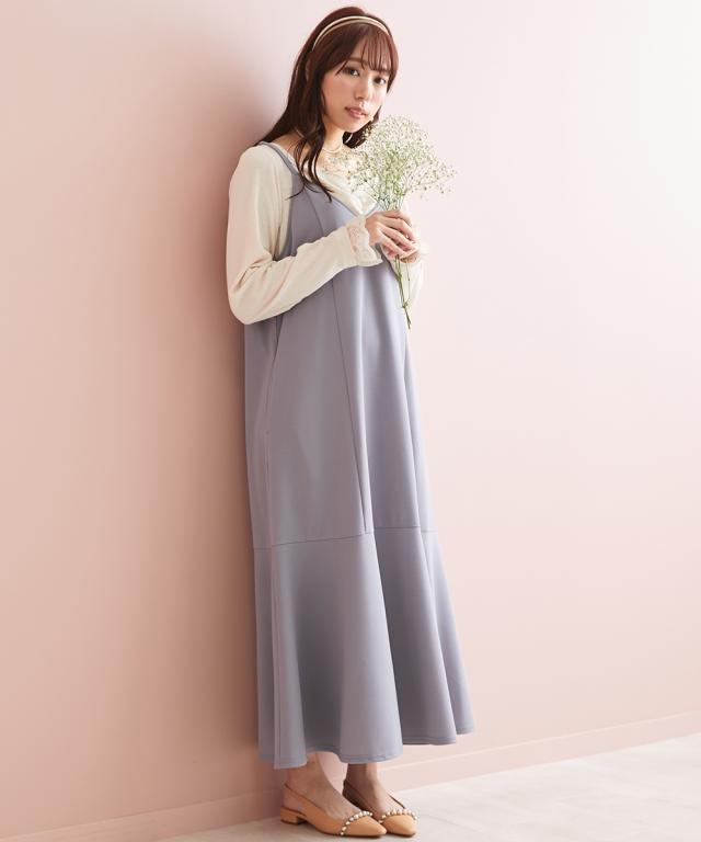 ワンピース ロング マキシ 大きいサイズ レディース カット ジャージ ー キャミソール marun グレージュ/ライトブルー/黒 6L/8L/10L ニッセン nissen