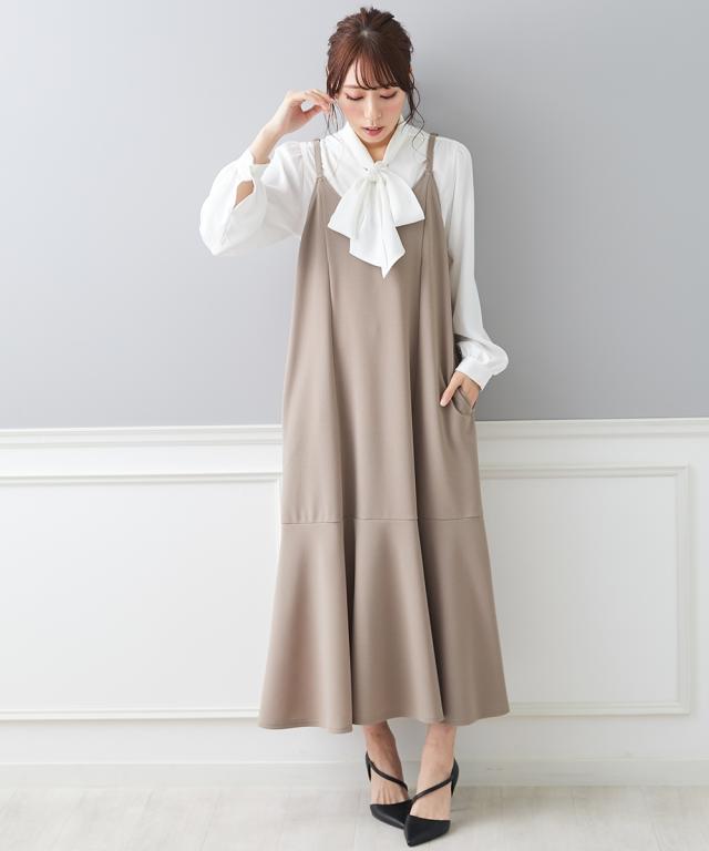 一枚で様々な着こなしをお楽しみいただけるキャミソールワンピースです。カットジャージー素材なので着心地楽々ですが、素材もしっかりしています。アジャスターで多少長さを調整していただけるのも嬉しいポイント