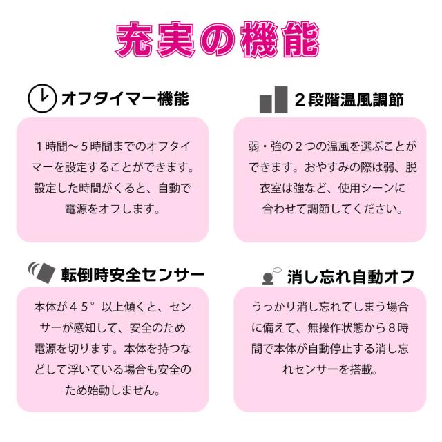 寒い足元に個人用として、脱衣所やトイレのヒートショック対策として、冷えるオフィスや倉庫、レストランなどの仕事場でも!