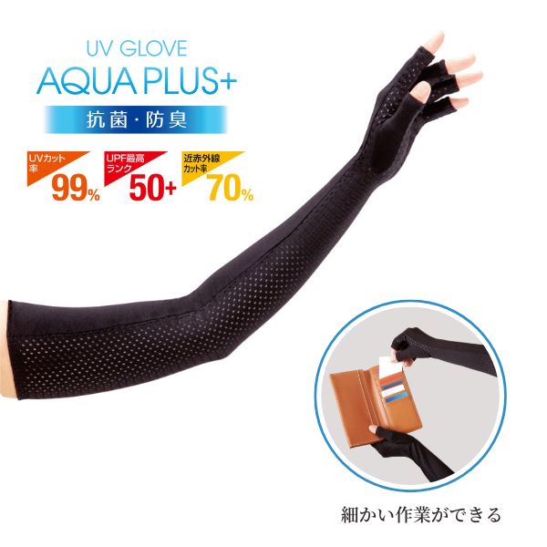 指先なし 指先なし手袋 手袋 指先無し アームカバー レディース 冷感 黒 ブラック ロンググローブ UV指あきグローブ アクアプラス 紫外線対策 UVカット UVケア 日焼け防止 メッシュ ひんやり 涼しい シンプル 春 春夏 薄手 グッズ