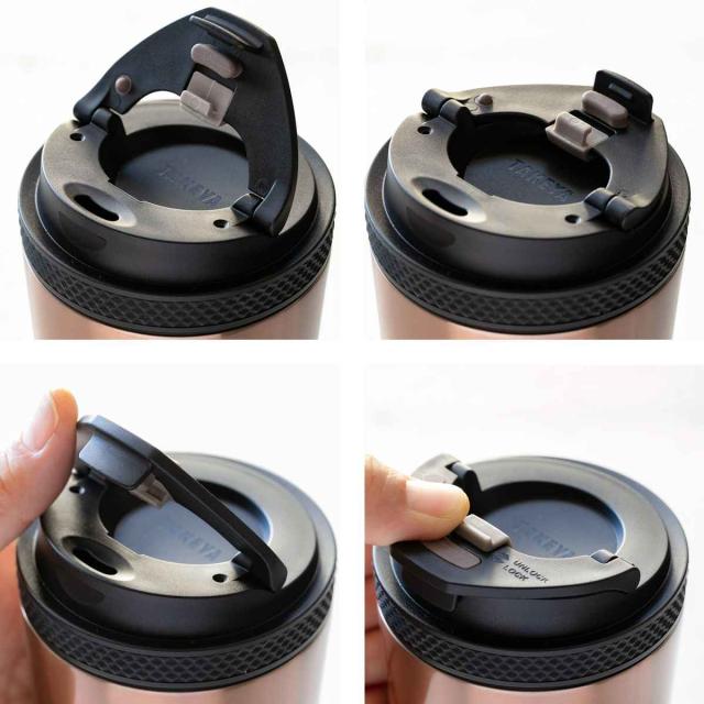 飲み口部分にロック機能が搭載されているのでこぼれにくく、飲むときはワンタッチで開けることが可能です。