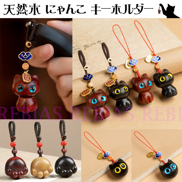 黒猫 キーホルダー 天然木 にゃんこ 猫 ストラップ 猫の手 肉球 開運 CAT 招き猫