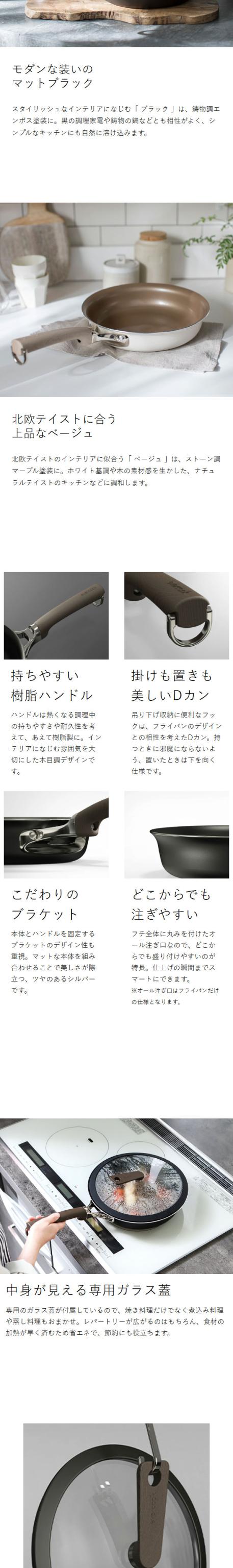 累計販売枚数600万枚を超える大人気のフライパンevercook( エバークック )から、シリーズ最上位モデル「 evercook DECO 」が登場。こびりつかないツルすべの使い心地に、インテリアと調和するデザイン性を備えたハイスペックモデルの蓋付きセットです。IH・直火対応で、独自コーティング技術により焦げ付きにくいのが特長。家族分の調理に役立つ定番サイズ『 IHフライパン 26cm 』と、煮込み料理にも便利な深型フライパン『 IHマルチパン 22cm 』から選べます。