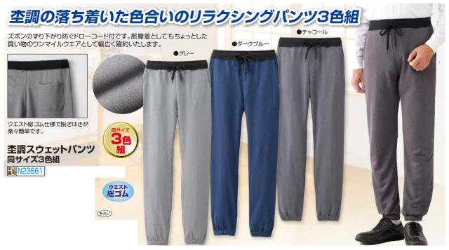 イージーパンツ スウェット グレー ブルー メンズ 秋冬 杢調スウェットパンツ 3色組 ボトムス 紳士服 シニア 男性 ファッション 50代 60代 70代 80代 父の日 お父さん シンプル ウエストゴム 青 ルームウェア ホームウェア pos kita p23661 (p24934) p25581 p26866
