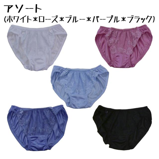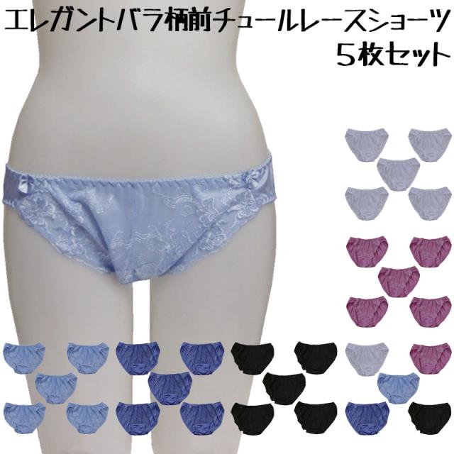 レディースショーツ セット エレガントバラ柄前チュールレースショーツ 光沢l トリコット 5枚セット M L LL 女性 レディース 下着 メール便送料無料