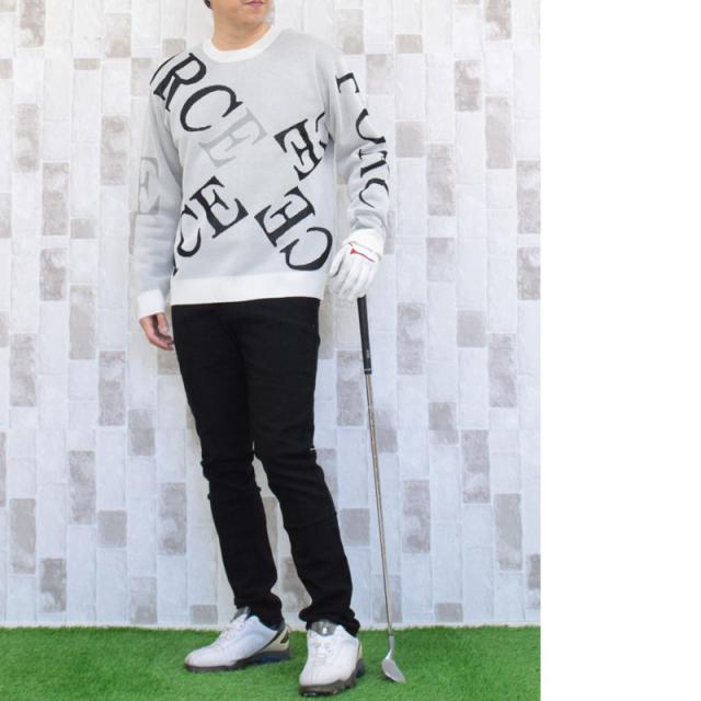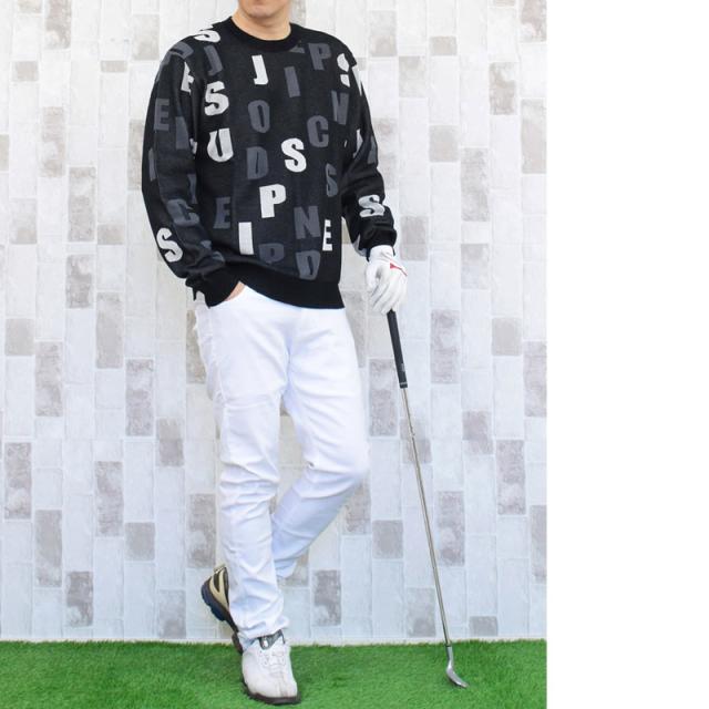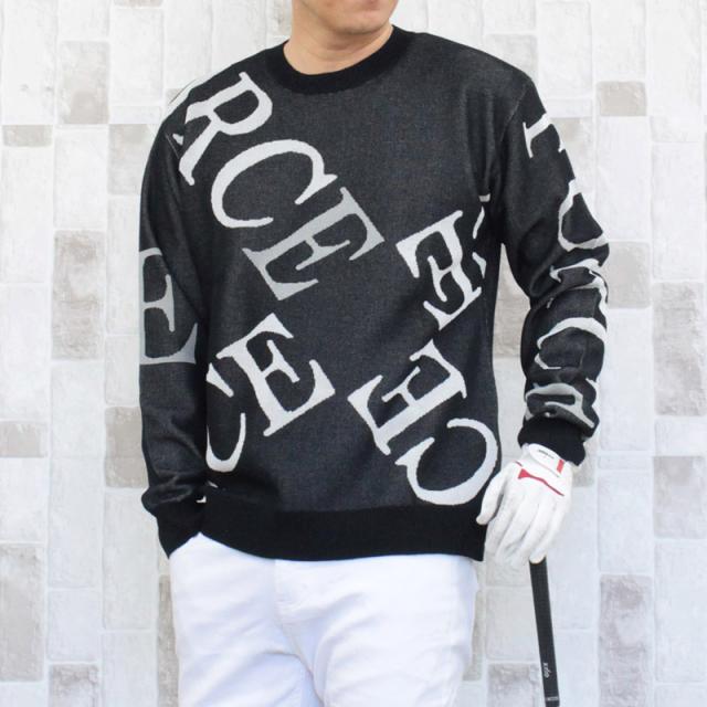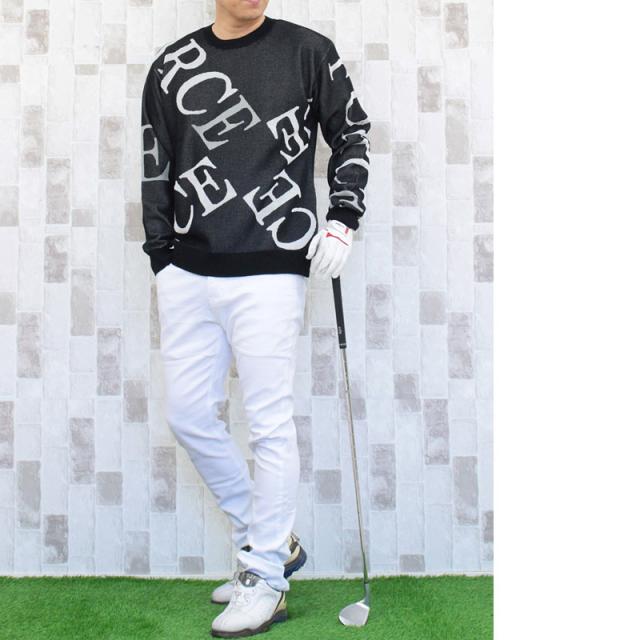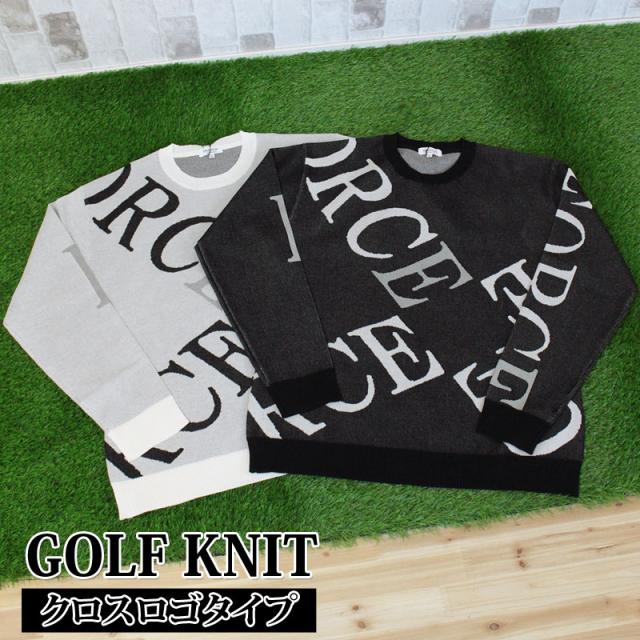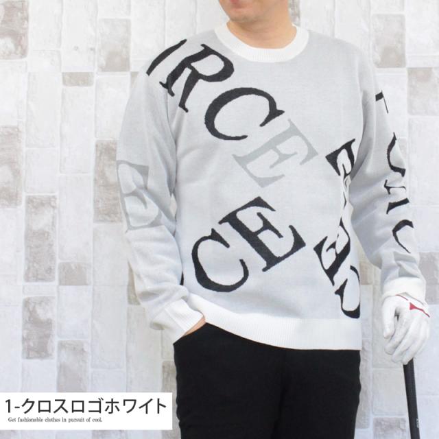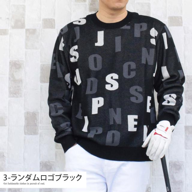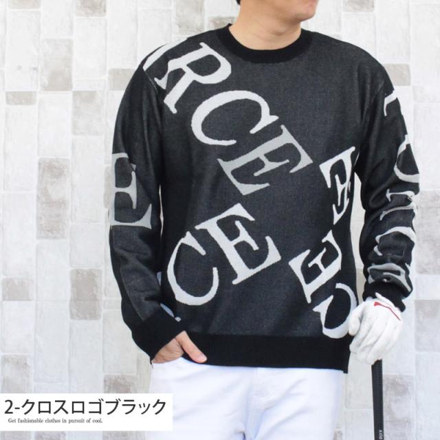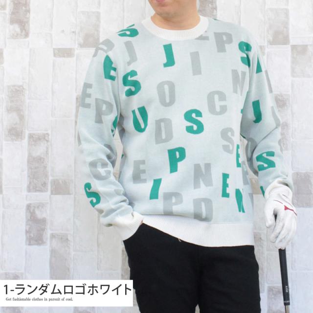 送料無料 ゴルフウェア メンズ ゴルフニット スプリングニット セーター トップス 総柄 ロゴ クルーネック スポーツ おしゃれ 春夏