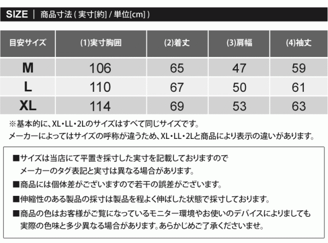 ※基本的に、XL・LL・2Lのサイズはすべて同じサイズです。