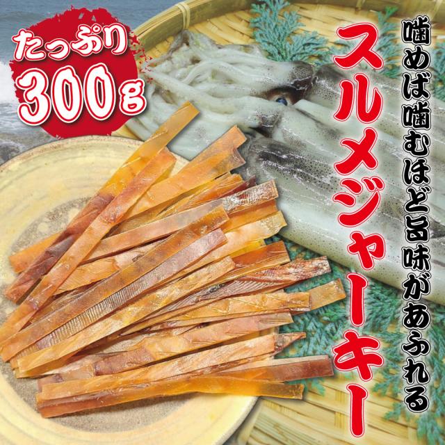 おつまみ スルメ イカ 大盛 メガ盛り スルメジャーキー 300g するめ いか 大量 お徳用 業務用 珍味 晩酌 ギフト 美味しい チャック付き袋入り おつまみ 美味しい 産地 海鮮 家飲み 北陸応援