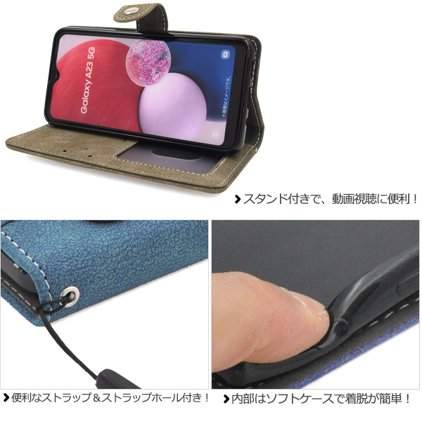 スマホケース Galaxy A23 5G SC-56C SCG18 手帳型 スライドポケット スマホカバー 装着簡単 磁石なし カジュアル ケータイケース お洒落 携帯カバー シンプル 横開き 携帯ケース コンサバ スタイリッシュ ソフトレザー auスマホ ケータイケース au携帯カバー 人気 定番