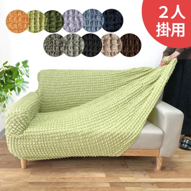 ソファーカバー 2人掛け 肘付き ぽこぽこ伸縮 ポップコーンジャガード ストレッチ かけるだけ 洗える 送料無料