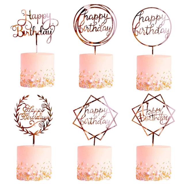 ピンクゴールドのケーキトッパーが6種類あります。全部可愛くておしゃれです。年齢問わずご利用いただけます。