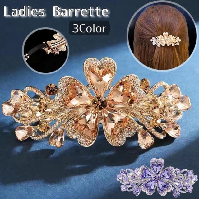 バレッタ レディース 女性 ヘアアクセサリー まとめ髪 髪留め 髪飾り ラインストーン フラワーモチーフ お花 キラキラ シンプ