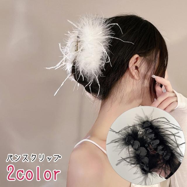 バンスクリップ ヘアクリップ レディース 女性 ヘアアクセサリー ファッション雑貨 フェイクフェザー ふわふわ ボリューム 大き