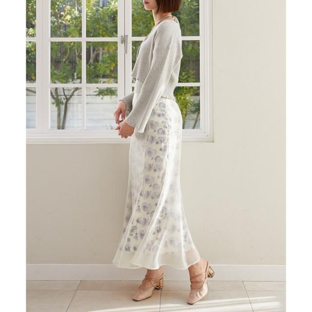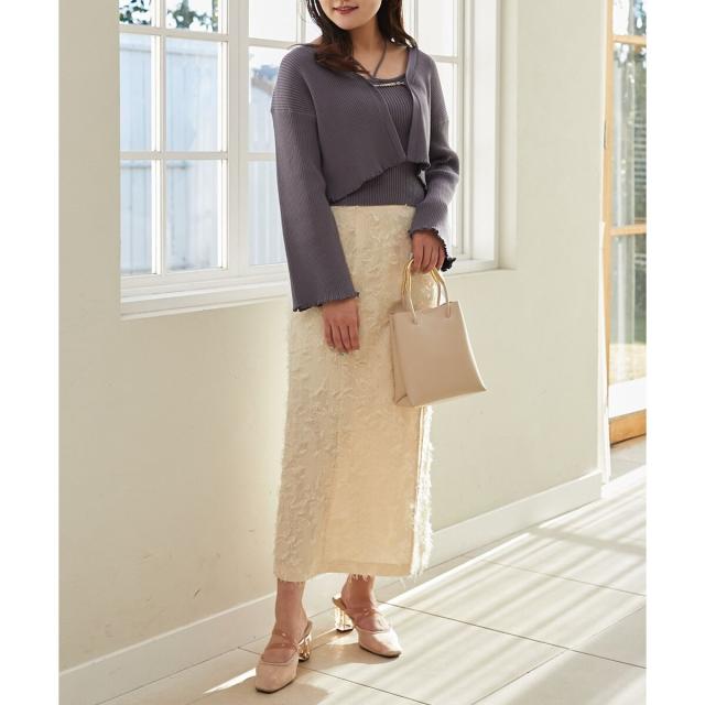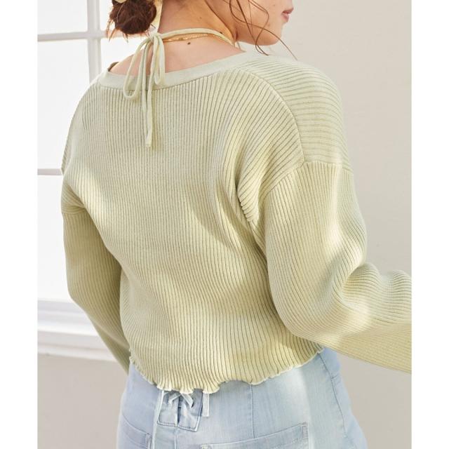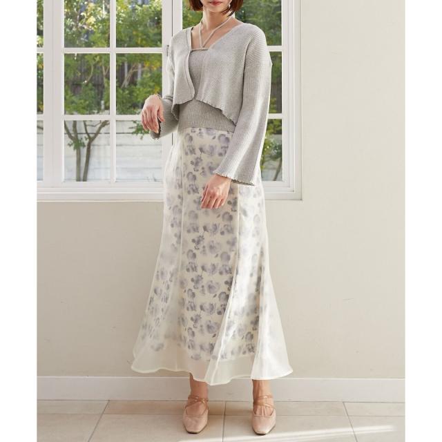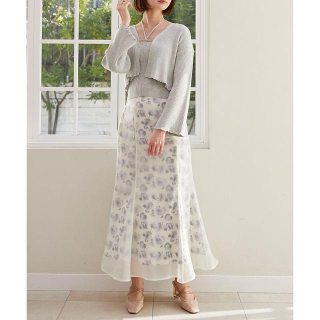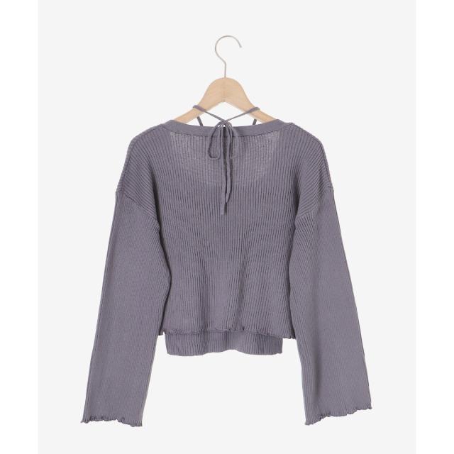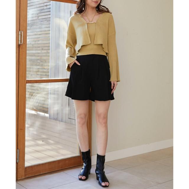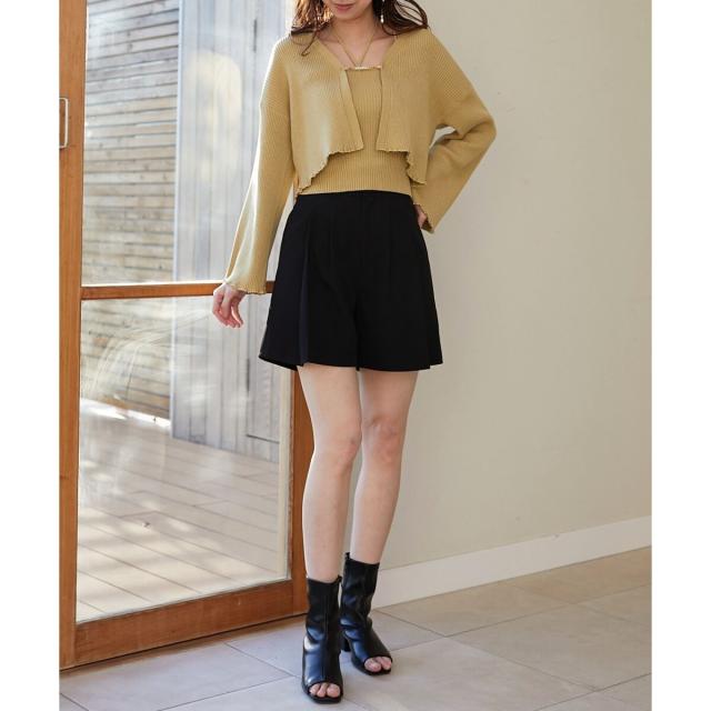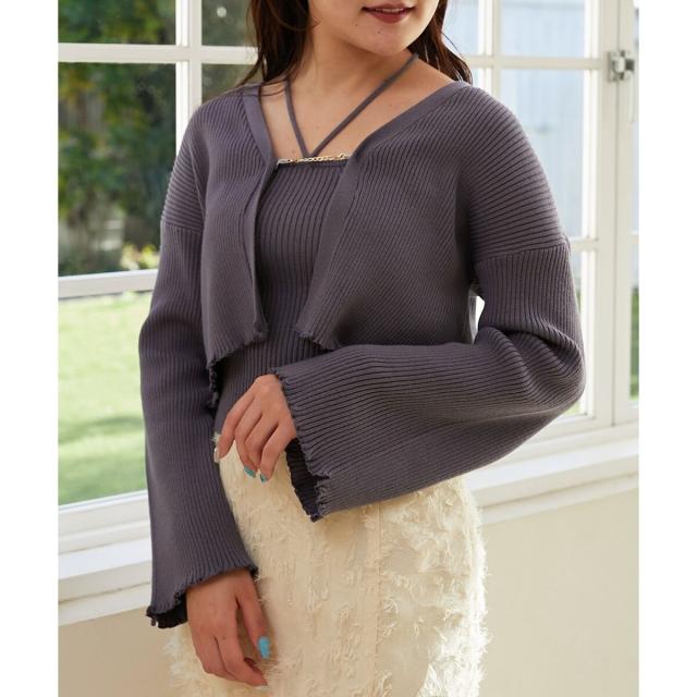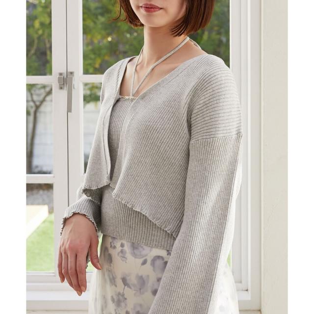 旬のフレアスリーブデザインのカーディガンと同素材のキャミインナーがセットになったアンサンブル。