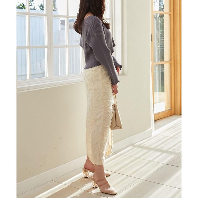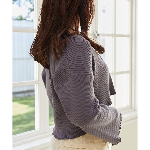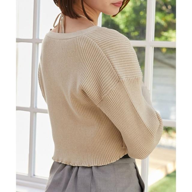 カーディガンはトレンドのクロップド丈でフロントのビットがアクセントに。