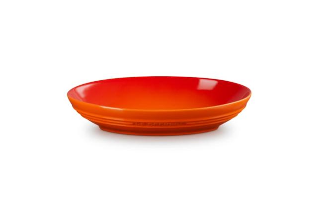 柔らかな曲線が特徴の、適度な深さのある楕円形のディッシュは、スープやシチュー、パスタやピラフなどに便利なサイズです。また、アイスクリームやフルーツを盛りつけてデザートプレートをつくったり、シェアしていただくサラダなどの副菜のお皿としてもおすすめ。ル・クルーゼを象徴するスリーリングとロゴがさりげないアクセントのシンプルなデザインは、和洋を問わずどんな料理も引き立てます。同シリーズの「オーバル・プレート 25cm」を合わせてコーディネートでき、セットでギフトアイテムとしても最適です。