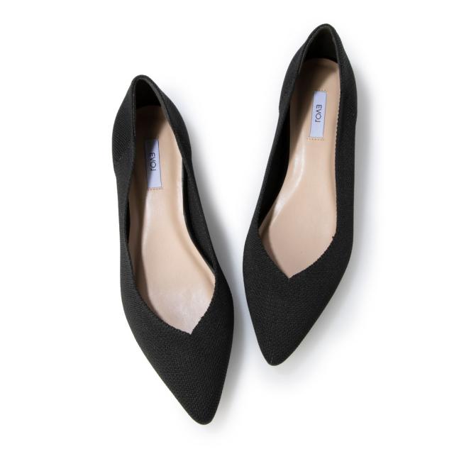 【EVOL】Vカットニットローヒールポインテッドパンプス IU5098