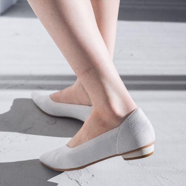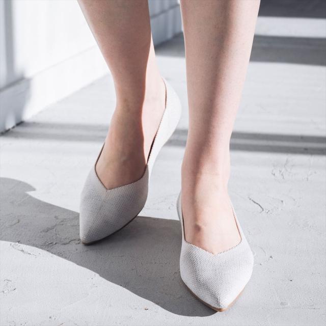 足元をすっきりシャープに見せてくれる上品なポインテッドトゥパンプス。アッパーのVカットラインでさらに美脚効果も!足当たりがとても柔らかく、高級感のある上質なニット素材を使用おり、シャープなフォルムなのに抜群の履き心地を実現。約1.5cmのローヒールがON・OFF問わずに使いやすく、きれいめなワンピースと合わせてちょっとしたお出かけにも◎