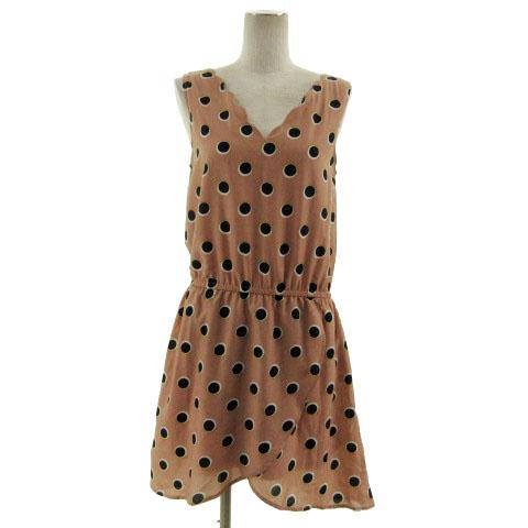 【中古】ラボラトリーワーク ワンピース ノースリーブ スカラップ ひざ丈 ドット柄調 ピンクベージュ 紺 白 黄色 M
