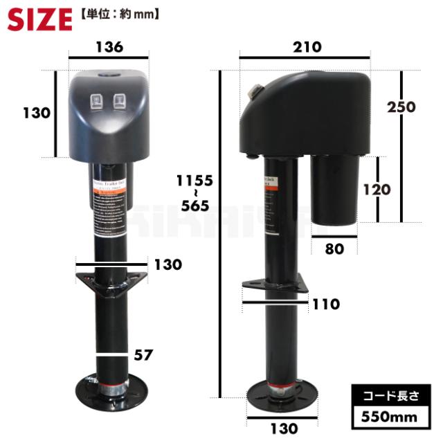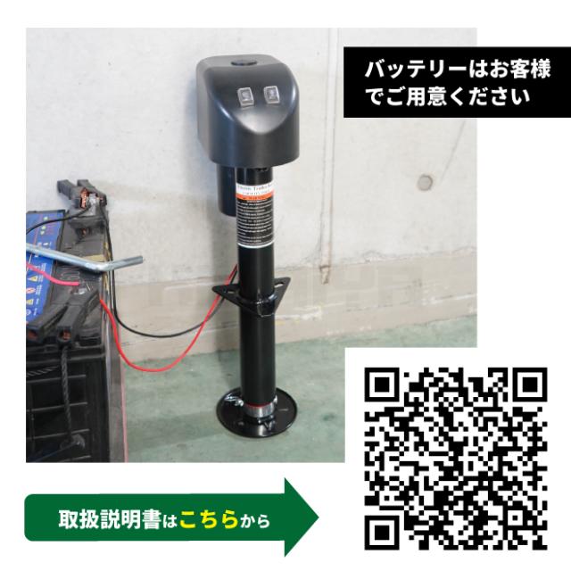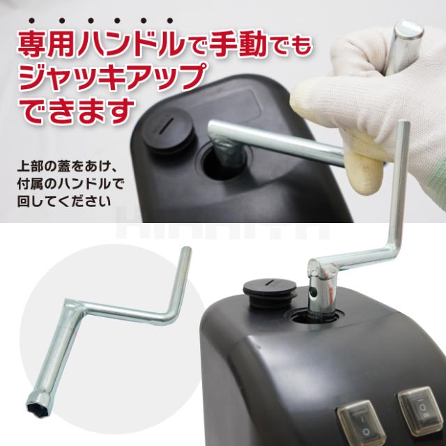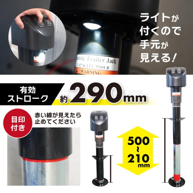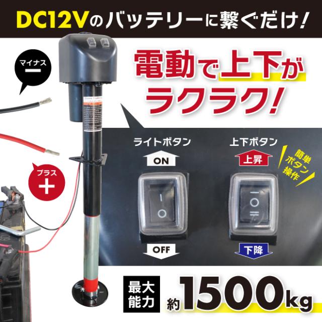 トレーラージャッキ 電動 手動 兼用 キャンプ アウトドア 最大能力1500kg 有効ストローク290mm DC12V 25A 300W 専用ハンドル 作業ライト KIKAIYA