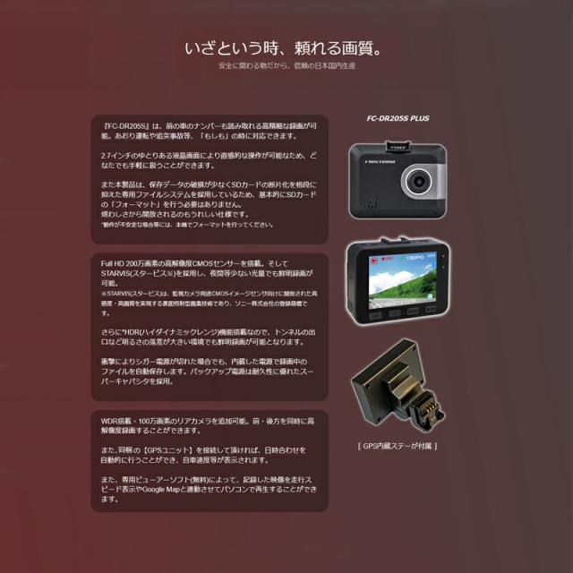 F.R.C.ドライブレコーダー FC-DR205SPLUS プラス 日本製 GPS内臓 STARVIS搭載 HDR フルHD 200万画素 ドラレコ ドライブカ