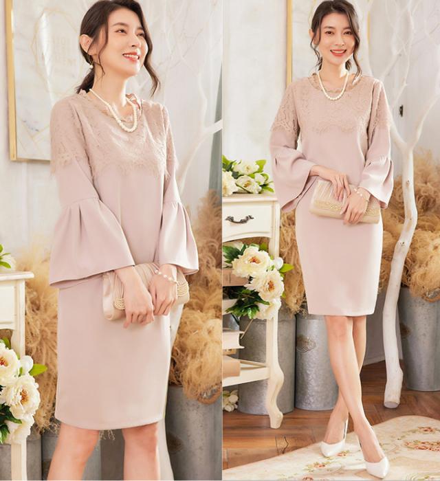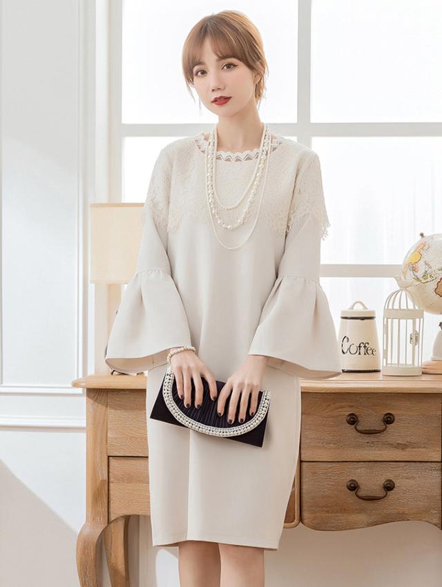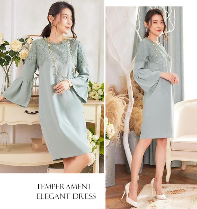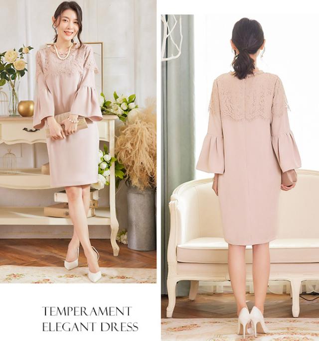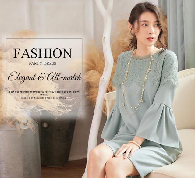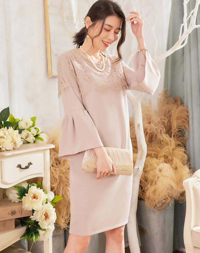 ワンピース フレア袖口 大人 可愛い 入学式 入園式 ママ 七五三 お宮参り 服装 母親 ぺプラム レディース 30代 40代 50代 結婚式