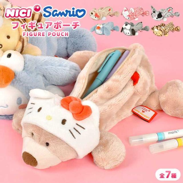 ぬいぐるみペンケース サンリオ Sanrio NICI ニキ コラボ ペンポーチ 筆箱 キャラクター かわいい ハローキティ シナモロール クロミ マイメロディ ポチャッコ ポムポムプリン ラブベア ハチドリ ダルメシアン シュナウザー タイガー ピンクレオパード グッズ 高校生 中学生
