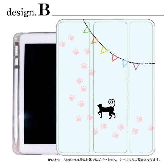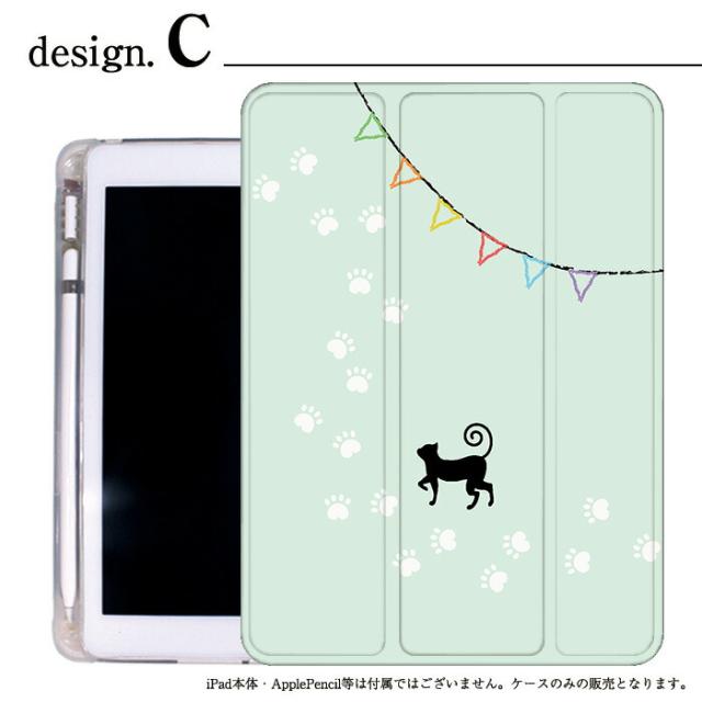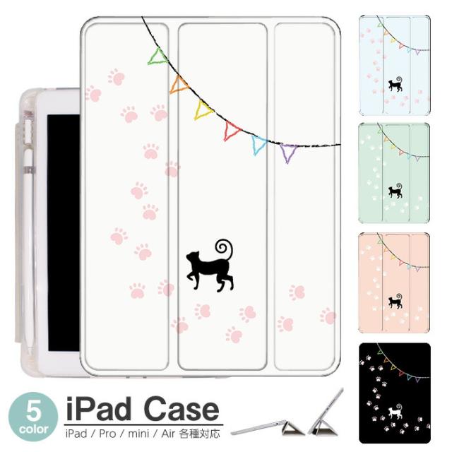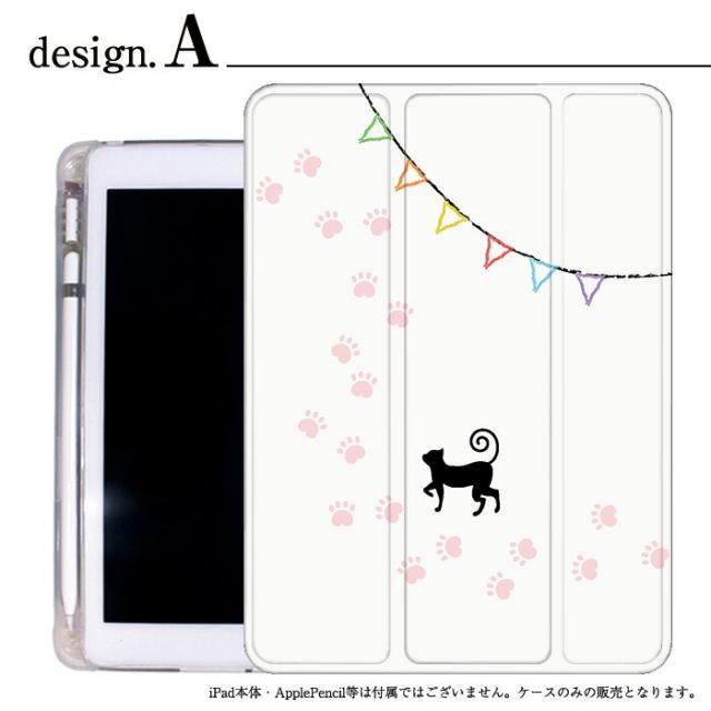 iPad ケース ペンシル収納 背面マット iPad mini6 ケース 2021 新型10.2インチ iPad ケース 第9世代 iPad Air5 ケース 10.2インチ ipad ケース 第8世代 iPad air4 ケース ペン収納 三つ折り保護カバー 軽量 iPad Air5 カバー Apple Pencil ネコ 猫 足跡