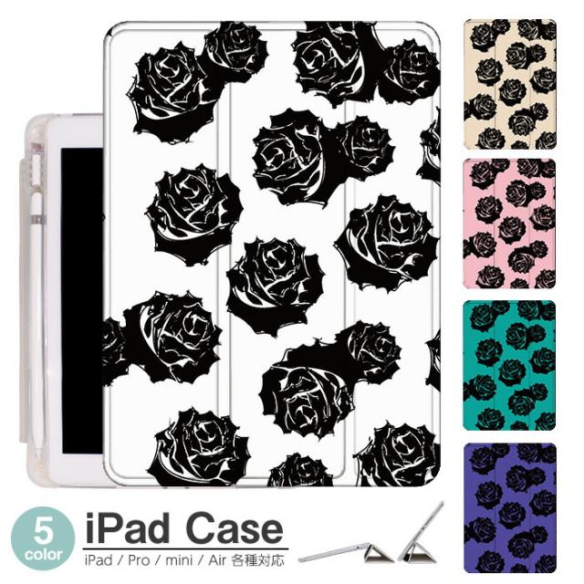 iPadケース アイパッドケース ipad Apple ipadProケース ipad収納 ipadスタンド ipad iPadPro第5世代 iPad第9世代 iPadmini6 Air4 ApplePencil収納付き ipadmini ipadPro12.9インチ ipadPro11インチ ipadPro10.5 ipadPro9.7 ipad第183世代 ローズ バラ 薔薇 黒色