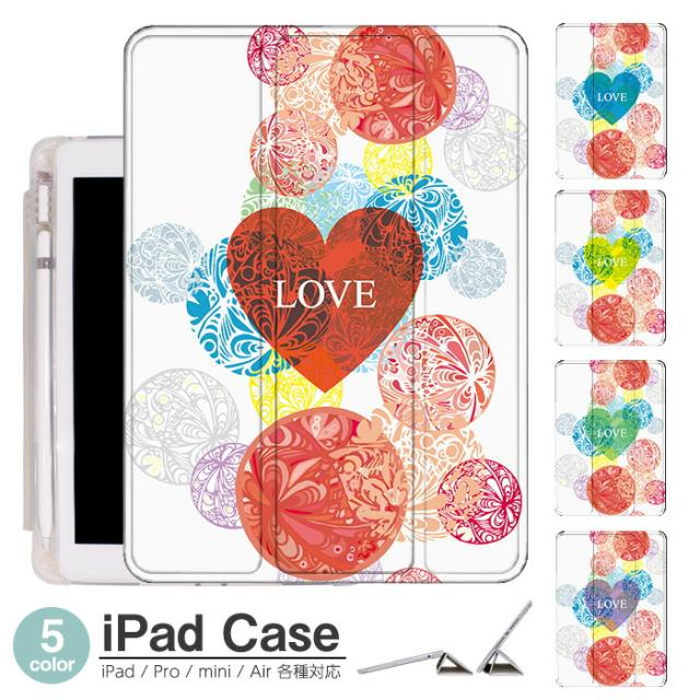 iPad ケース ペンシル収納 背面マット iPad mini6 ケース 2021 新型10.2インチ iPad ケース 第9世代 iPad Air5 ケース 10.2インチ ipad ケース 第8世代 iPad air4 ケース ペン収納 三つ折り保護カバー 軽量 iPad Air5 カバー Apple Pencil ハート LOVE ドット