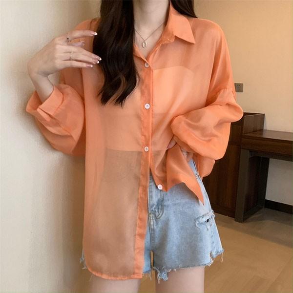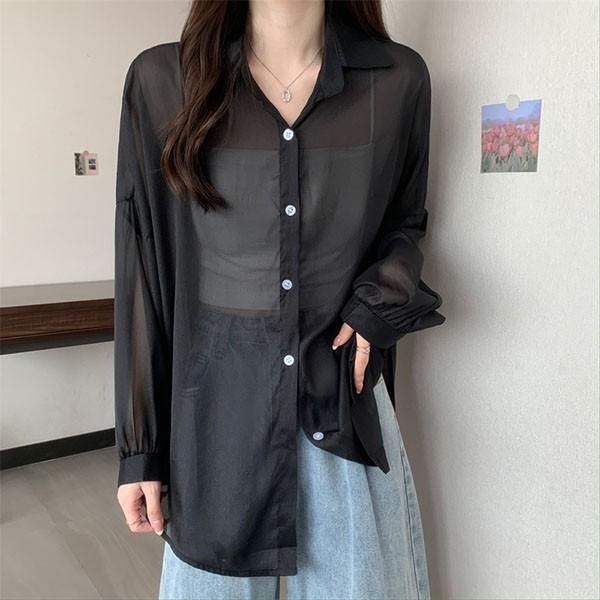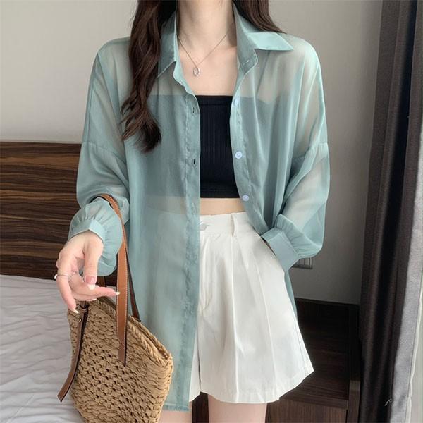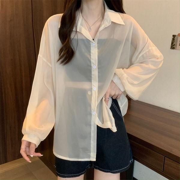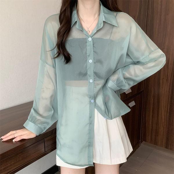 【レビュー投稿で+5%還元】6色 シアーシャツ 透け感 レディース ブラウス 長袖 トップス シャツ オーバーサイズ シンプル カジュアル おしゃれ ゆったり 日焼け対策 冷房対策