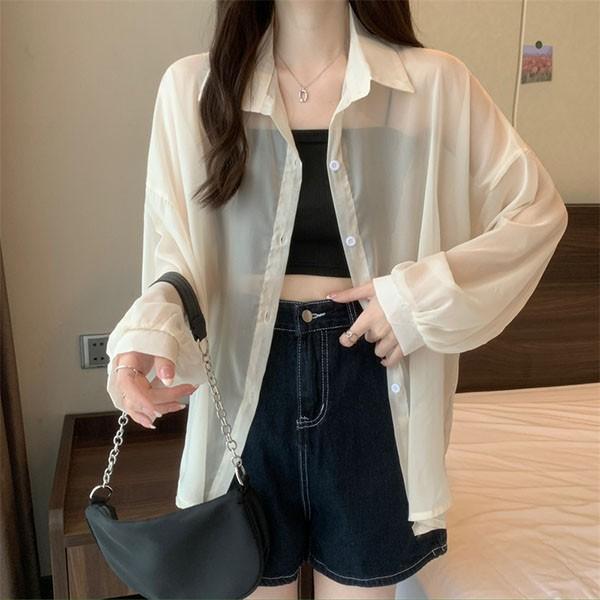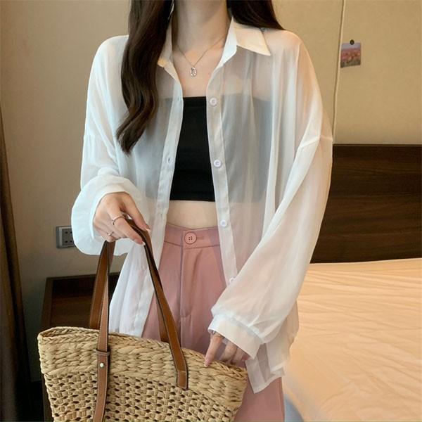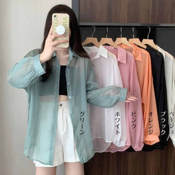 6色 シアーシャツ 透け感 レディース 日焼け止め ブラウス 長袖 トップス シャツ 前開きシャツ 重ね着 オーバーサイズ トレンド シースルー シンプル カジュアル おしゃれ ゆったり 日焼け対策 冷房対策 羽織 夏物 春 秋 ホワイト ピンク dg139n1n1x0
