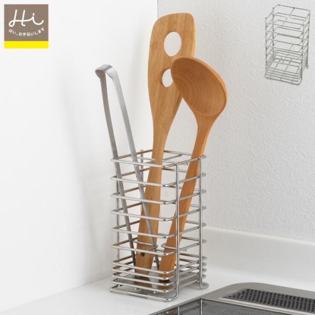 ヨシカワ Hi! ぴったり置けるしかくいツールスタンド 1306208【ツールスタンド カトラリースタンド ステンレス 角型/キッチン 台所 収納 整理/食洗機対応/日本製 燕三条】