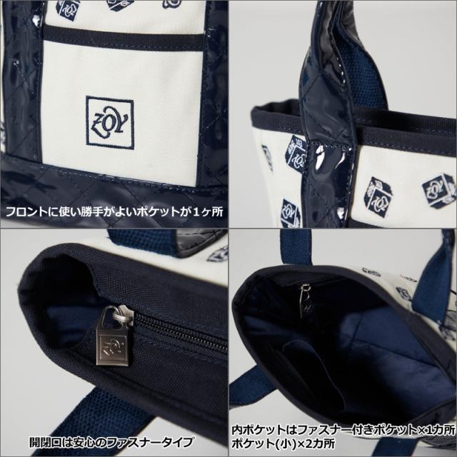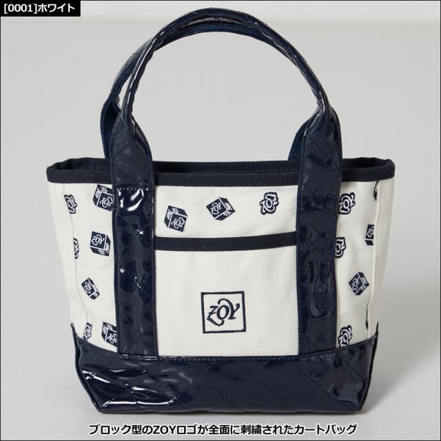 ブロック型のZOYロゴが全面に刺繍されたカートバッグです。
