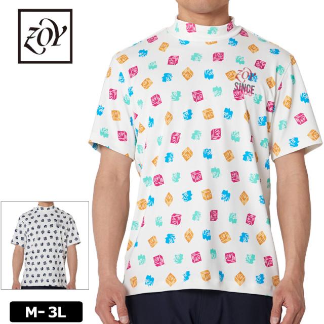 ZOY ゾーイ メンズ ブロックロゴプリント モックネック 半袖 シャツ 071422005 【メール便発送】【新品】RAAR ゴルフウェア メンズウェア トップス 半そで