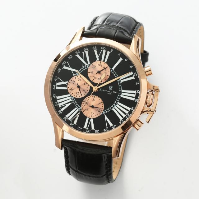 【Salvatore Marra】 サルバトーレマーラ 腕時計 メンズ カレンダー 24時間表示 1年保証 専用BOX保証書 国内正規品 日常生活防水 クオーツ レザーベルト ローマ数字 アナログ ビッグフェイス
