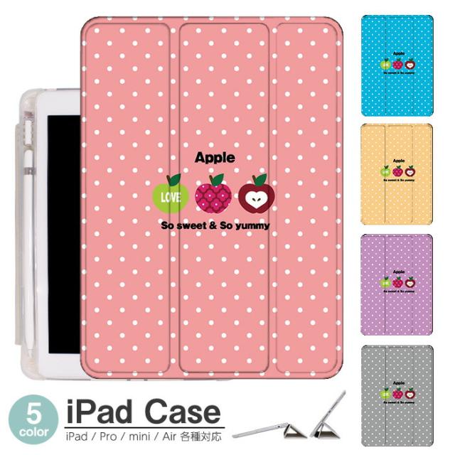 iPad ケース ペンシル収納 背面マット iPad mini6 ケース 2021 新型10.2インチ iPad ケース 第9世代 iPad Air5 ケース 10.2インチ ipad ケース 第8世代 iPad air4 ケース ペン収納 三つ折り保護カバー 軽量 iPad Air5 カバー Apple Pencil りんご ドット