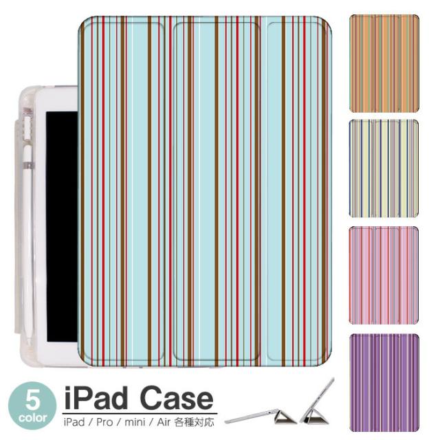 iPad ケース ペンシル収納 背面マット iPad mini6 ケース 2021 新型10.2インチ iPad ケース 第9世代 iPad Air5 ケース 10.2インチ ipad ケース 第8世代 iPad air4 ケース ペン収納 三つ折り保護カバー 軽量 iPad Air5 カバー Apple Pencil マルチ ストライプ