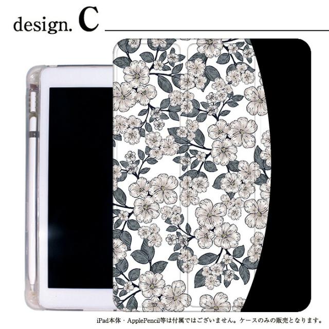 iPad ケース 花柄 モノトーン Air5 第5世代 mini6 Air4 10.9 9.7 2017 2018 第9世代 タッチペン オートスリープ対応 Pro 9.7 Pro 10.5 Air3 10.2 2019 2020 薄型 軽量 mini4 mini5 Air2 iPad Air アイパッドエアー2ケース アイパッドミニカバー