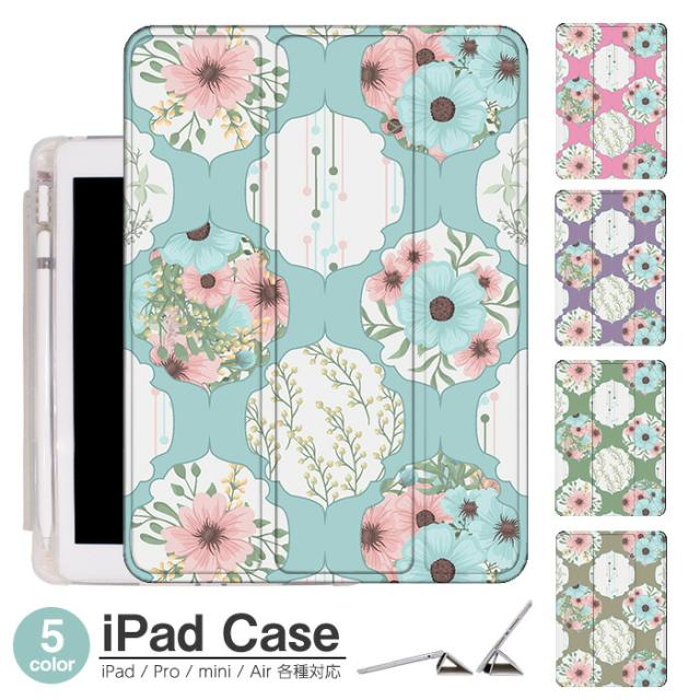 iPad ケース ペンシル収納 背面マット iPad mini6 ケース 2021 新型10.2インチ iPad ケース 第9世代 iPad Air5 ケース 10.2インチ ipad ケース 第8世代 iPad air4 ケース ペン収納 三つ折り保護カバー 軽量 iPad Air5 カバー Apple Pencil 水色 ピンクの花
