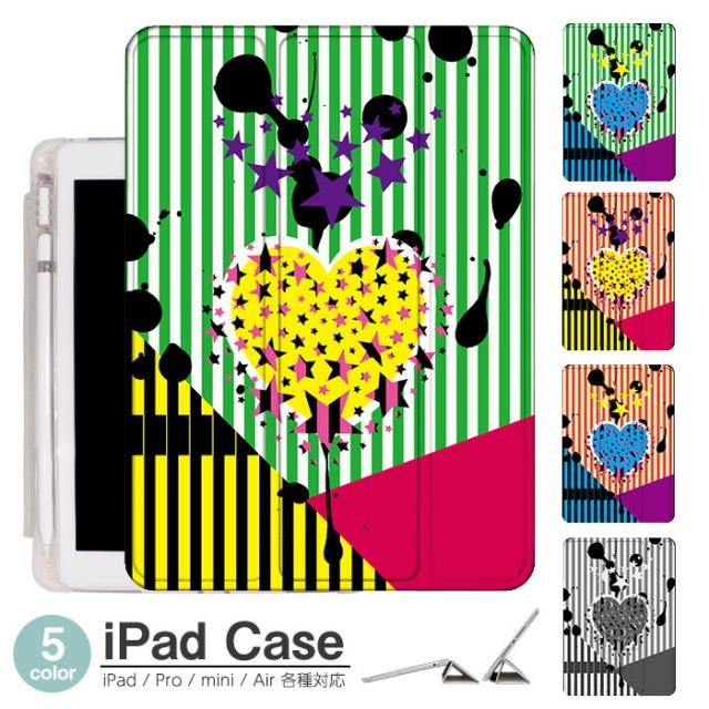iPad ケース ペンシル収納 背面マット iPad mini6 ケース 2021 新型10.2インチ iPad ケース 第9世代 iPad Air5 ケース 10.2インチ ipad ケース 第8世代 iPad air4 ケース ペン収納 三つ折り保護カバー 軽量 iPad Air5 カバー Apple Pencil ハート ストライプ